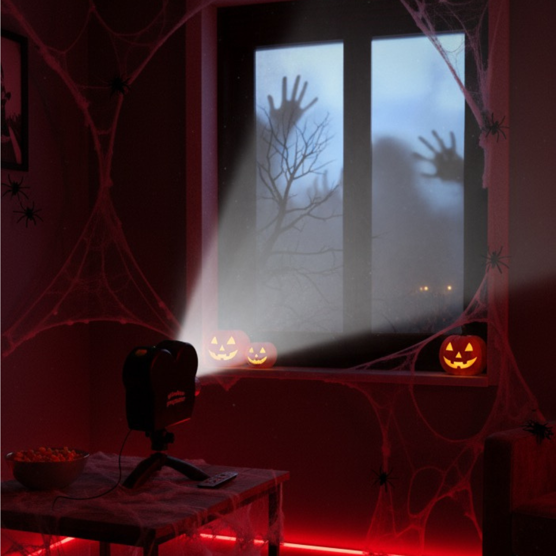 The Window Projector transforms any window into a living display, projecting eerie Halloween visuals (or festive ones for other seasons) directly onto your window surface.